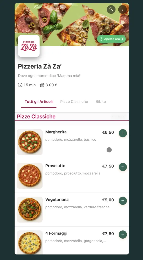 Pochi minuti! Con pomoAI puoi creare il tuo Sito Online per Ordini, configurare il menu e iniziare a ricevere ordini in giornata.